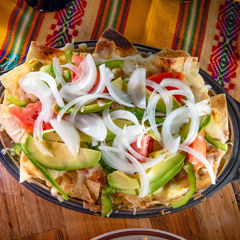 Flat, crispy corn tortilla topped with your choice of topping, finished with shredded and lettuce and mild salsa. Served with your choice of 1 side: Rice, Beans, or Cole Slaw | Add Cheese to Rice or Beans +$1.00